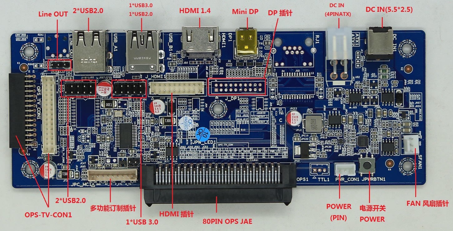 OPS子卡,也叫OPS轉(zhuǎn)接卡、OPS轉(zhuǎn)接板、OPS擴(kuò)展卡,按照 INTEL(Open Pluggable Specification)開放式可插拔規(guī)范生產(chǎn),是將OPS電腦與一體機(jī)、電視機(jī)的內(nèi)部線路進(jìn)行連接的一個(gè)橋梁,可以將一體機(jī)或電視機(jī)內(nèi)部電源,通過(guò)OPS JAE接口提供給OPS電腦主機(jī),同時(shí)將OPS電腦的HDMI、DP、Audio、USB、COM、開/關(guān)機(jī)等信號(hào)通過(guò)OPS JAE接口與觸控一體機(jī)的液晶屏驅(qū)動(dòng)板、喇叭、觸摸框、開關(guān)等部件進(jìn)行對(duì)接,通過(guò)拔插即可實(shí)現(xiàn)觸控一體機(jī)、液晶電視機(jī)與OPS電腦主機(jī)之間連接使用!