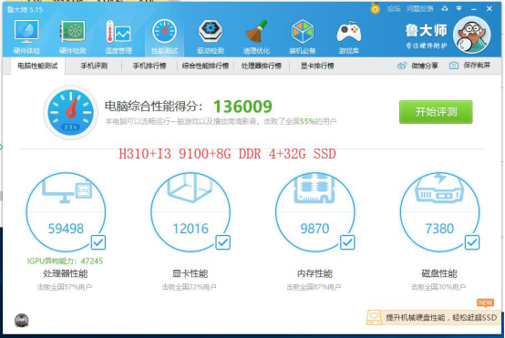 由上圖可以看出,澤創多網卡網安主板ZC-H310QV主板配酷睿九代I3 9100處理器搭載8G筆記本內存32G固態硬盤跑出了驚人的136009分!性能都可以趕超7代的I5處理器了,如果采用雙通道內存,再配一個大容量高速固態硬盤,得分還可以更高!